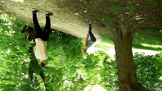 Exceptionally immense gross disgusting whore gargles and rides bone outdoors