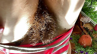 Hairy Slut displays you her pussy up close