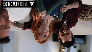 Playful redhead stepsister decently DPed by two horny bulls in noisy trio