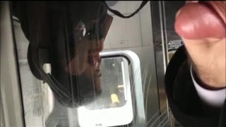dickflash in a hotel where a maid comes through the balcony and gets jizz on her hooters