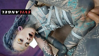 Tattooed Emo Goth Girl in Harness Bra Get Fucked Hard