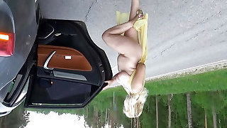 Outdoor masturbation game for pretty towheaded Jaquelin