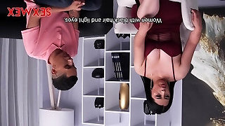 Office stunner instructs her slave during cfnm