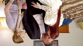 Stud fucks pretty ginger bride Danni Rivers and her lustful girlfriend