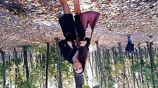 Walking NO Underpants in Pantyhose #PUBLIC Autumn Park