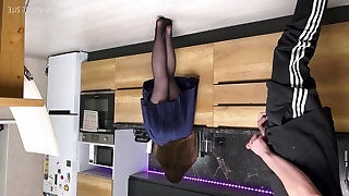 Stocking Sex With Step Mom In The Kitchen - Jism On Feet