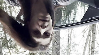 Speculum beauty peeing outdoors before internal teasing