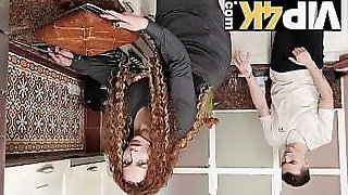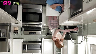 SHAME4K. Curly redhead with good-sized tits sucks neighbors manstick in the kitchen