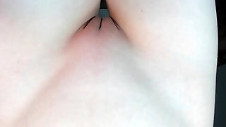 My girlfriend's alluring hairless pussy in POV