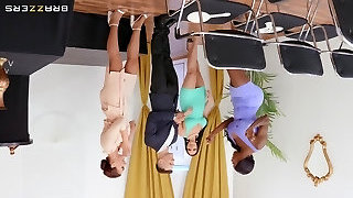 Four sexy sluts lick and chat in a lesbian gang