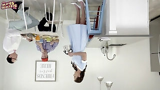 Sexy Lusty Brunette Maid Caught On Spying Gets Her Chief's Huge Wood In All Holes