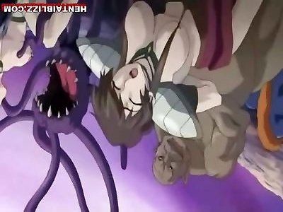 3d anime caught by monster tentacles and sucked bigcock