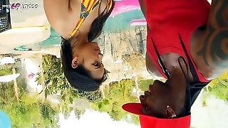 Tiny Half Asian Teen Lana Violet talk to First BBC Bi-racial Fuck at Pool
