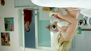 Captivating blonde Mona Wales takes a bathroom before making love with her spouse