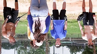 Two Chubby Busty Ebonies & 1 Curvy Light-haired White-skinned Babe Share The Tennis Instructor's BBC In 4some