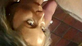 Chubby British pornographic star blows a dick then takes it deep in her coochie