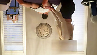 I jack off in the bathroom until the apartment service cleaning damsel comes in and helps me finish cumming