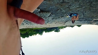 Public hard-on flash in front of the duo of hikers. She helped me cum while he was on the phone