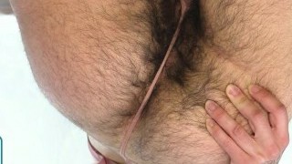 Ebony hairy pussy in g-string creampied