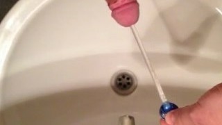 Close up male peehole injection AKA Sounding