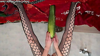 Home alone Satine spread gams to play with a long cucumber. HD