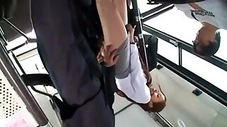 Busty, Asian brunette is getting harassed in a public buss, but she likes it a pile