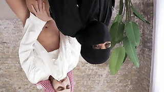 Petite Ebony Pops Pussy in Sexy Naughty Santa costume underwear