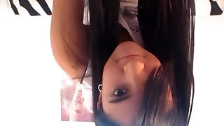 Cute and shy Japanese girl flashes her titties and beaver on cam