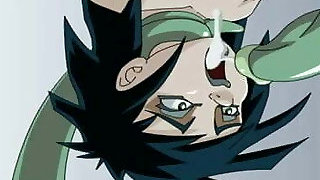 Cute hentai sucking stiff cock and swallowing cum