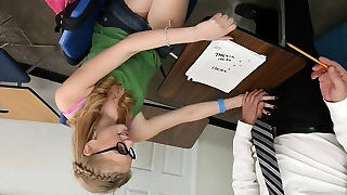 Giant breasted teen Ella Knox gives a blowjob and tit-screwing to stepbrother's friends